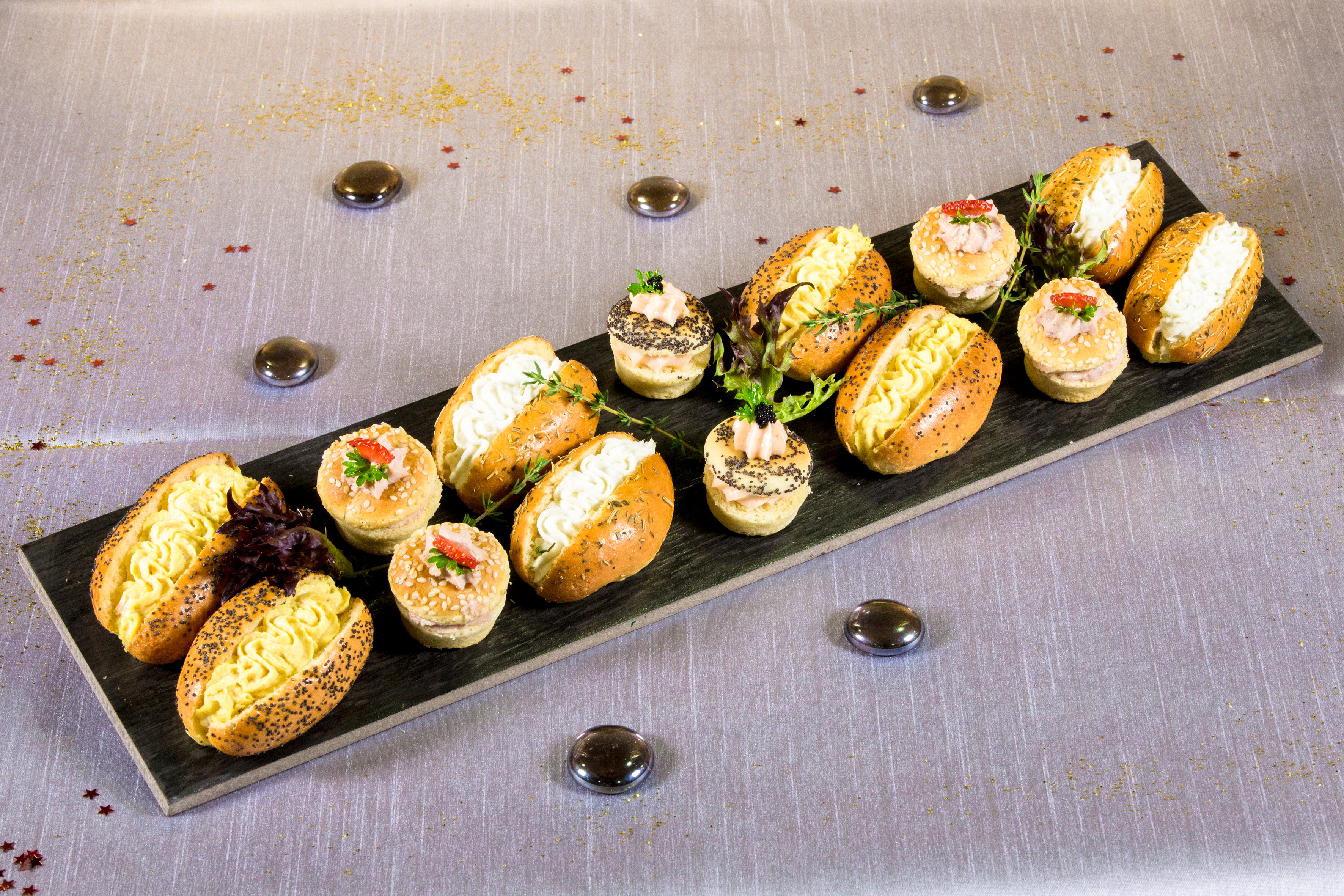 Les cocktails déjeunatoire sur la base de 12 pièces salées et 4 pièces sucrées à partir de 30.00 € TTC /pers